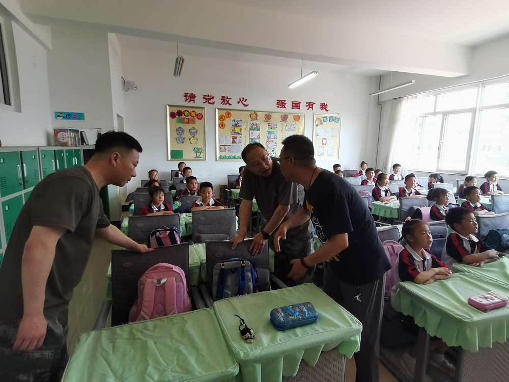 為了進一步了解孩子們對多功能課座椅的使用情況,6月29日下午,在結束了對中共奉天支部營口小組紀念館參觀學習之后,公司副總經(jīng)理于忠水、張桐瑋及其他公司黨員代表一行,來到了營口市西市區(qū)創(chuàng)新小學,走進班級,深入課堂,詳細查看了多功能座椅的使用和保養(yǎng)情況。