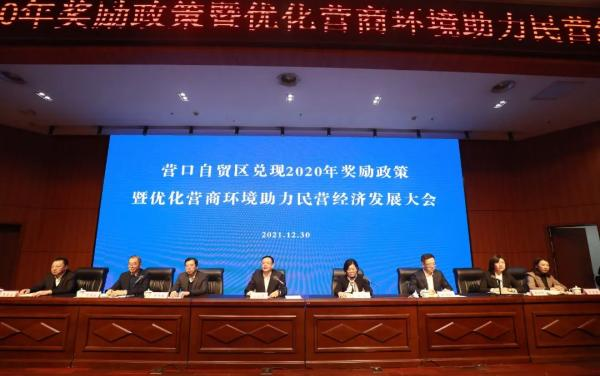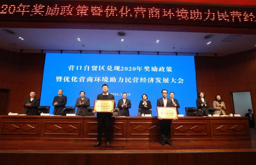 2021年12月30日,我公司參加了由營口自貿(mào)區(qū)黨工委、管委會(huì)召開的“兌現(xiàn)2020年獎(jiǎng)勵(lì)政策暨優(yōu)化營商環(huán)境助力民營經(jīng)濟(jì)發(fā)展大會(huì)”,參會(huì)的人員有自貿(mào)區(qū)黨工委、管委會(huì)領(lǐng)導(dǎo)班子成員、管委會(huì)各部門負(fù)責(zé)人、國企公司、各派駐機(jī)構(gòu)代表以及獲獎(jiǎng)企業(yè)代表,共計(jì)100余人。